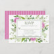 Esta charmosa e elegante placa RSVP com lindas, sábias, multiabdominais hipnagas cor-de-rosa e uma espantosa folhagem verde e coordenação das riscas cor-de-rosa é perfeita para se juntar aos vossos convites. Seus convidados acharão fácil responder ao seu casamento. É uma excelente escolha para qualquer primavera ou noiva de verão. Você pode facilmente torná-lo seu, selecionando Personalizar este modelo e digitando no prazo de resposta. Em segundos você verá suas placas RSVP únicas e impressionantes! Além disso, a seleção dos polvos ajudará com a restauração na sua recepção.