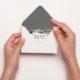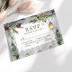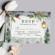 Placa RSVP de Casamento de Lanterna Botânica de Pinheiros Russos de inverno. Belo design de casamento no inverno elegante com lanterna de neve com galhos de pinheiros botânicos e pinheiros rústicos. Esta coleção de casamento moderno personalizada pode ser facilmente personalizada com os seus próprios detalhes de casamento.