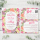 O Rsvp em estilo com o nosso brilhante cartão de resposta de casamentos de chic, guiado pelo arco floral boêmico, com bonito mão pintada por flores brilhantes e ousadas e selvagens misturam um sentimento de vintagem, com corais, flores roxas, rosas rosa e verde com uma celebração de festa de casamento com o tema botânico. Com uma tipografia moderna e néon rosa em azul marinho. Adicione seu código qr para direcionar seus convidados para mais informações e detalhes, adicione suas opções de comida, solicitação de música...