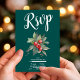 Assegure um processo de planejamento de casamento sem problemas com nossa placa RSVP de Casamento Verde de Natal. Esta carta maravilhosamente desenhada apresenta elegante verde de inverno e sotaques festivos de férias, complementando perfeitamente o seu tema sazonal de casamento. Impresso no estoque de cartão de alta qualidade, a placa RSVP inclui espaço para os convidados indicarem sua presença e preferências de refeição, fazer tanto na moda quanto prático. Personalize-o com os seus nomes e data de casamento para uma suíte de convites coesa e memorável. Ideal para casamentos de inverno e natalinos, este cartão RSVP adiciona um toque de mágica de férias à sua celebração. Ordene agora que termine a papelaria de casamento com elegância e charme.