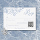 Elevem seu dia especial com nosso elegante e vintage cartão de resposta ao casamento do estilo barroco com um código QR, uma obra-prima de elegância do eterno. Apresentando uma delicada borda de chinoiserie azul empoeirada francesa com delicadas flores de linhagem em um fundo branco pristino, esta design exude encanto clássico e sofisticação. Sua simplicidade destaca seus detalhes refinados, criando um design tão gracioso quanto sua história de amor. Perfeito para aqueles que apreciam tradição e elegância. Criado pela imprensa simplesmente de farmácia.