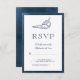 Cartão RSVP Casamento de praia de Seashell, Marinho clássico e