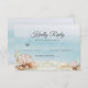 Estas cartas de RSVP de Casamentos na costa de verão apresentam fundo de oceano de cor d'água, com conchas na praia no fundo. Localizar produtos correspondentes na coleção.