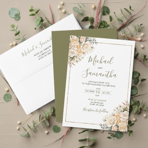 A Elegante Coleção de Casamentos Brancos e Rosa de Marfim é uma design para dar o tom ao seu dia especial. Apresentando rosas de aquarela e sotaques florais complexos com verde sábio, este conjunto de casamento irradia elegância e sofisticação. Preencha sua coleção de papelaria de casamento com nossa suíte de casamento. Nossa coleção organizada inclui a coordenação Salvar a Data, Convites, Cartões RSVP, Cartões detalhados, adesivos, etiquetas favoritas, menu, cartas de agradecimento e mais garantia de uma aparência coesa e polida ao longo de sua jornada de casamento.