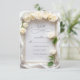 Ornamentados luxuosos com padrões de rosas intrincados, especialmente rosas, esculpidos por todo o lado. O quadro é monocromático, Cartão RSVP de Rosas Brancas Elegante Velvet, rosas, flores, personalizável floral, folhagem e ramificações em vários tons de verde com impressão.