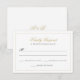 Apresentando nossa Clássica Carta RSVP de Casamento de Script Formal Preto e Dourado de Fronteira, uma combinação impressionante de elegância e simplicidade. A placa apresenta um fundo branco limpo com uma borda dourada em greve, destacando o refinado guião dourado que elegantemente soletra "Responder gentilmente" no topo. O design é eterno, permitindo que os hóspedes respondam com facilidade em estilo, enquanto os sotaques dourados trazem um toque de luxo para o seu casamento.