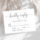 Cartão RSVP de casamento elegante com "gentilmente responda" em um roteiro de caligrafia em na moda com baloiços, uma simples tipografia moderna e seus nomes unidos por um coração nas costas.
