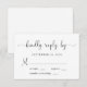 Cartão RSVP de casamento elegante com "gentilmente responda por" em um roteiro de caligrafia com picos, simples tipografia moderna e seus nomes juntos por um coração no verso.