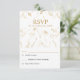 Cartão RSVP Casamento de Sketch de Flor Selvagem Branca e Dour