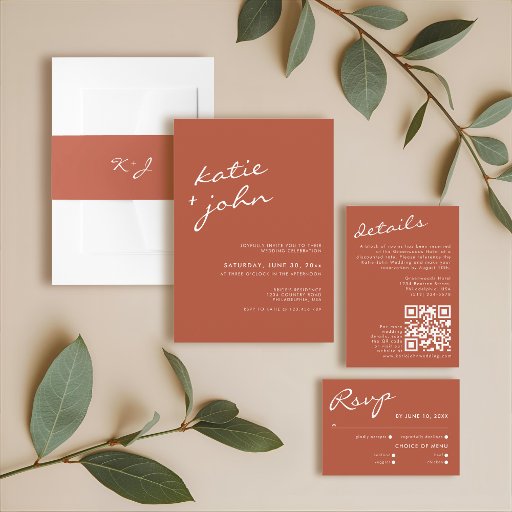 Cartão RSVP Casamento de Terracotta com Caligrafia Minimalista