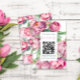 Elegante design floral com script de estilo manuscrito moderno, CÓDIGO QR e pedras de aquarela românticas em fundo branco.O texto pode ser facilmente personalizado para um único design único para seu dia especial.