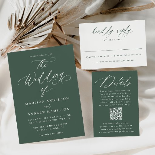 Cartão RSVP Casamento do Código QR Verde da Caligrafia Elegant