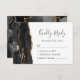 A borda esquerda deste elegante cartão de cercado RSVP de casamento moderno apresenta uma borda preta de aquarela, aparada com falso brilho dourado. O título "Resposta Rápida" aparece em script de escrita manual, com texto personalizável abaixo na fonte da placa comercial da cinza de carvão em um fundo branco. O verso apresenta um design de agate preto e dourado correspondente.