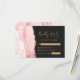 A borda esquerda desta elegante e moderna placa RSVP de casamento apresenta uma borda cor-d-água rosa pincelada, aparada com falso brilho dourado. O texto está em um script de escrita manual de cor dourada e um tipo de letra de impressão em fundo preto. O lado inverso apresenta um design de cor-de-rosa-pincel e um agate dourado correspondentes.