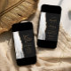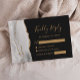 A borda esquerda desta elegante e moderna placa de cerâmica RSVP de casamento apresenta uma cinza e uma borda branca com coloração aquosa, aparada com falso brilho dourado. O título "Resposta gentil" aparece em um script de escrita manual dourado, com texto personalizável abaixo em uma fonte de impressão em um plano de fundo off-black. O verso apresenta uma cinza correspondente, design de agate branco e ouro.