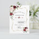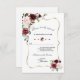 Design de cartão elegante, com cor d'água, delicada burgundy, blush, flores de ameixa, falso quadro de ouro, divisor floral, sobre fundo branco. Na parte de trás, coroa e iniciais florais. Use a ferramenta Personalizar para adicionar suas informações. Para obter itens correspondentes, visite minha Coleção de Flores do Burgundy Blush.