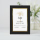 Forneça aos seus convidados para responder ao seu convite de casamento com esta elegante placa RSVP que apresenta um script moderno em texto preto, incluindo uma palmeira artística do ouro e uma estrutura de ouro metálico na frente da placa. Um fundo preto está na frente e atrás.