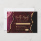 Cartão RSVP Casamento Dourado de Script Agate Vermelho Burgund