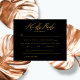 Cartão RSVP Casamento Elegante de Script Dourado Preto Manuscr