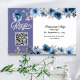 Apresentando elegantes tons azuis empoeirados e delicados sotaques florais brancos, essas placas combinam design eterno com conveniência moderna. Os convidados podem simplesmente digitalizar o código QR personalizável para RSVP on-line, fazer que seja fácil gerenciar as respostas enquanto mantém uma busca perfeitamente coordenada pelo seu pacote de papelaria de casamento.