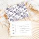 Cartão rsvp de casamento simples e elegante apresenta um lindo padrão botânico violeta colorido no verso, e uma tipografia arrojada clássica na frente branca do cartão. A escolha das refeições e a data de resposta estão incluídas no texto editável.