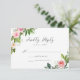 Cartões RSVP de casamento florais elegantes, com data RSVP e data de RSVP, e personalizados aceitam/declina a redação com buquês de cor-de-água rosa e flores embaçadas com folhas verdes vívidas. O cartão de resposta do casamento floral se reverte para um fundo rosa claro e claro. Projetado para coordenar com a nossa coleção de casamento Floral Suave Rosa.