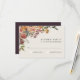 Projetado para coordenar com a nossa coleção de casamentos florais de cor d'água do Rustic Bloom, este elegante cartão RSVP botânico apresenta um spray de mãe pintada a aquarela e flores rosa em tons ricos de outono de marsala, ameixa burgundy, rosa-blush e creme num fundo branco quente. Personalize com a data de resposta desejada e aceite e recuse o texto. Um cartão de resposta chic e elegante para o outono ou casamentos no inverno.