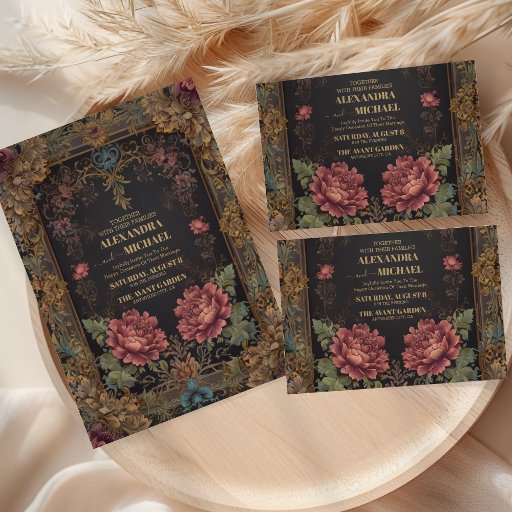 Cartão RSVP Casamento Floral Vitoriano Gótico