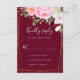 Um elegante cartão de resposta floral com flores cor d'água cor-de-rosa com caligrafia manuscrita moderna em fundo vermelho-burgundy.