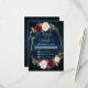 Cartão RSVP floral azul-escuro burgundy, geométrico, com buquê elegante de azul-marinho, azul-real, branco, esbranquiçado, burgundy, rosa de marsala e folhas verdes de eucalipto sage e elegante quadro neutro geométrico de brilho dourado. Entre em contato comigo para obter ajuda sobre a personalização ou se você precisar de outro produto com este design.