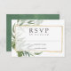 Cartões RSVP de casamento de florestas verdes com ervas selvagens, samambaias e folhas com estrutura geométrica de ouro personalizável para suas especificidades de evento.