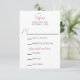 Esta placa RSVP faz parte da nossa Coleção de Casamentos Minimalistas do Cravo Vermelho. Ele coordena-se perfeitamente com o nosso convite do Casamento Vermelho com a caligrafia moderna e com fontes fáceis de ler. Este Cartão RSVP oferece aos seus convidados muito espaço para escrever as suas respostas aos seus convites de casamento e dá-lhes opções para as escolhas comidas que gostariam na sua recepção.