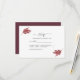 Cartão RSVP de casamento mínimo elegante com caligrafia chic off-black e um toque na moda de folhagem de folha burgundy em um fundo branco. A parte de trás do cartão é uma sombra profunda de burgundy. Basta adicionar os detalhes do seu casamento. Desenvolvido exclusivamente para você pelo Happy Dolphin Studio. Se tiver perguntas ou pedidos, contacte-nos em happydolphinstudio@outlook.com. Estamos felizes em ajudá-lo a fazer seu casamento o dia mais bonito!