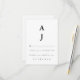 Placa rsvp mínima preta e branca moderna com monograma vertical. Por favor, veja esta coleção de casamento de tendências para coordenar convites e acessórios elegantes.