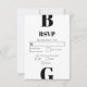 Cartão RSVP Casamento Mínimo Moderno do Monograma Negro e Bran