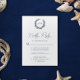 Uma coral de quadros de corais as iniciais monográficas da noiva e do noivo no topo deste clássico cartão RSVP de casamento branco e azul marinho. Encontre produtos correspondentes na coleção ou entre em contato comigo através do Zazzle Chat para obter produtos adicionais ou outras formas de cores.