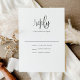A Elegante Carta RSVP de Caligrafia Moderna Negra e Branca apresenta uma caligrafia ousada e moderna, combinada com o tipo clássico.