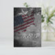 Esta carta de RSVP de casamento patriótica apresenta uma bandeira americana em forma de formato com estrelas decorativas e uma cinza e fundo de moagem preto. ^