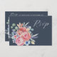 Cartão RSVP Casamento por Aquarela Floral Rosa Azul Moderno Es