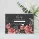Cartão RSVP Casamento Preto Floral Simples e Gótico
