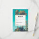 Um cartão RSVP com uma bela fotografia. Palmeiras altas com troncos longos e finos em frente a um lindo céu verde. Esquema de cor retrorativa. Relaxando e relaxando.