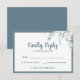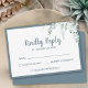 Cartão RSVP elegante e romântico com um buquê de aquarela bonito e suave com flores brancas sobre verde e outra folhagem botânica no canto superior direito. Edite facilmente os campos de modelo para adicionar seu texto em uma fonte moderna e simples de bonés de cinza de slate. Para mais personalizações ou encomendas personalizadas, contacte-me livremente em acherryonthecake@hotmail.com (permita 1-2 dias úteis). Este cartão RSVP faz parte da coleção "White Gentle Flowers - Romantic Cinza Wedding Suite" com muitos itens coordenadores para criar uma suíte de casamento única.