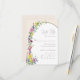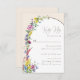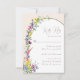 Este moderno cartão de RSVP de casamento floral do boho com opções de refeição apresenta um arco offset decorado com flores silvestres coloridas e brilhantes, em um fundo bege. Por favor, verifique a coleção para o resto do pacote de convites de casamento correspondente e mais produtos correspondentes.