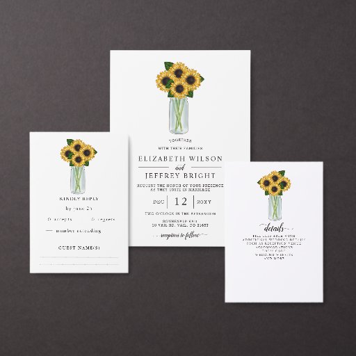 RSVP Card Rustic Sunflower Mason Jar Weding