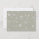 Envolva seus hóspedes na beleza serena do inverno com nosso belo cartão de resposta de casamento com opções jantes. Um pano de fundo empoeirado cria uma canvas pacífica para um arranjo atordoante de pinças verdes frescas, florescentes de cor creme macio e pinecones castanhos rústicos. Esta obra-prima natural é enfeitada com uma delicada queda de neve de imersão em flocos de neve prateados, capturando a magia de uma terra maravilhosa de inverno. A interação de texturas e cores evoca um sentimento de calor acolhedor e alegria festiva, estabelecendo o tom perfeito para a sua celebração de inverno. Que este design seja o primeiro vislumbre do dia mágico que planejou. Criado pela imprensa simplesmente de farmácia.