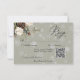 Envolva seus hóspedes na beleza serena do inverno com nosso belo cartão de resposta de casamento com um código QR. Um pano de fundo empoeirado cria uma canvas pacífica para um arranjo atordoante de pinças verdes frescas, florescentes de cor creme macio e pinecones castanhos rústicos. Esta obra-prima natural é enfeitada com uma delicada queda de neve de imersão em flocos de neve prateados, capturando a magia de uma terra maravilhosa de inverno. A interação de texturas e cores evoca um sentimento de calor acolhedor e alegria festiva, estabelecendo o tom perfeito para a sua celebração de inverno. Que este design seja o primeiro vislumbre do dia mágico que planejou. Criado pela imprensa simplesmente de farmácia.