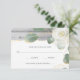 Belo brinde de rosa verde de casamento que você pode incluir com seus convites florais rústicos! A design boho aquarela de Raphaela Wilson nesta modelo fácil de usar ilustra folhas de eucalipto de prata verde-soprado, realçadas em ouro, com rosas brancas elegantes. Matizes claros e escuros de madeira de celeiro de cinzas azuis empoeirada estão por baixo, juntamente com um papel branco rasgado, acentuado com bordas douradas. Se preferir uma cor diferente de madeira de fazenda, selecione facilmente entre cinzas escuras, azul marinho, vermelho-burlando, roxo/lavanda, castanho-chocolate, branco-teal e branco antigo. Nestas elegantes cartas rsvp de resposta ao casamento, você também pode simplesmente esconder a madeira completamente e escolher uma lavadora de cor d'água de uma cinza/simples cor de fundo sólido. Preferiria que o seu eucalipto verde fosse acentuado com prata em vez de ouro? Escondam muito facilmente as camadas de ouro e revelem as folhas e ramos de prata! Esses bonitos cartões de resposta de casamento de rosa branca e costume complementam qualquer celebração de tema de jardim em qualquer ano - seja no outono/outono, primavera, inverno ou verão. Categoria: cartões rsvp de casamento rústicos; cartões rsvp de casamento em aquarela; e cartões rsvp de resposta floral. Tema de cor do casamento russo: cinza azul claro e escuro, verde sábio, ouro e branco.