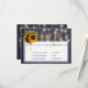 RSPV de casamento com caligrafia dourada e opções de menu com buquê de girassóis rústicos e cordas de luzes cintilantes em fundo de quadro-negro azul-marinho escuro. Ideal para seu verão à noite ou outono | casamentos temáticos elegantes rústicos campestres | jardim ao ar livre no quintal. ------ Se você não precisar das opções de menu, basta excluir os textos correspondentes nos espaços!