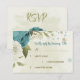 Cartão RSVP casamento verde com flores brancas azuis