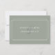 Cartão de confirmação de casamento verde sage Art Déco clássico com linhas geométricas elegantes que enquadram suas informações especiais, com os nomes dos felizes noivos no verso. Criado por Thisisnotme©
